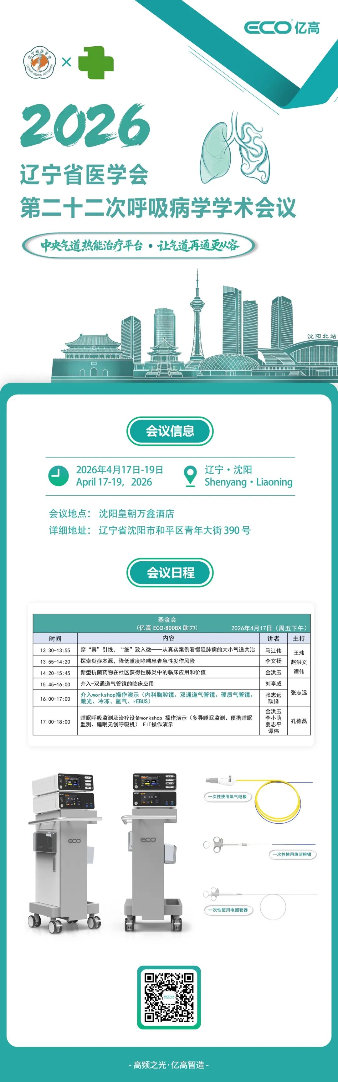 亿高医疗秉持“中央气道热能治疗平台,让气道再通更从容”的学术主张,携全新第三代氩气刀ECO-800BX系列,即将亮相此次会议!
