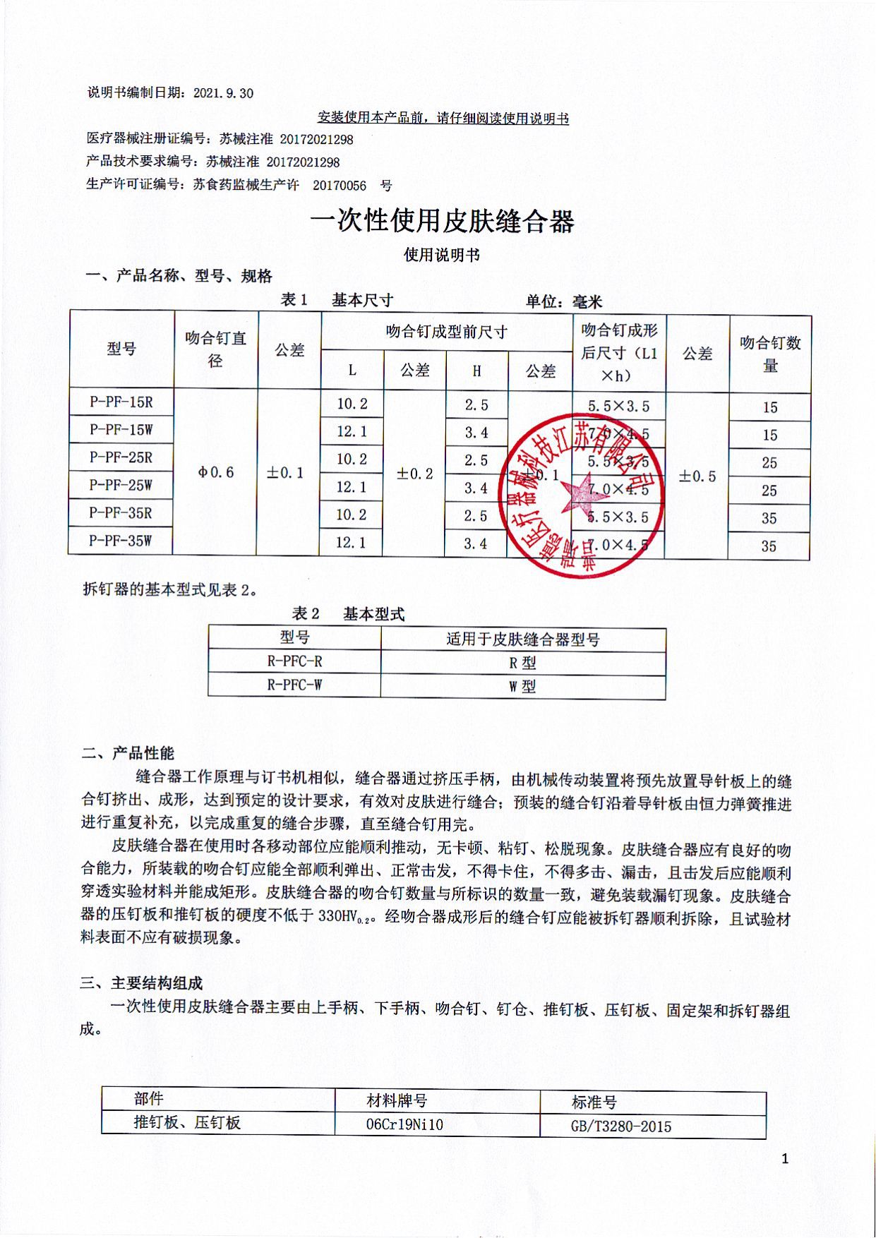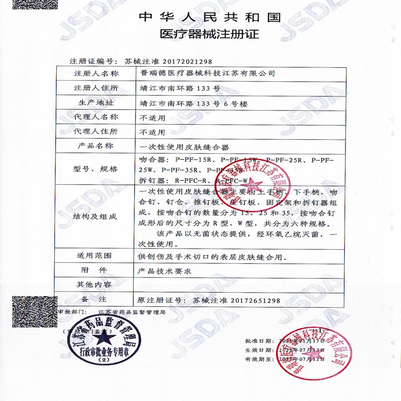 普瑞德一次性使用皮肤缝合器医用无菌伤口缝合机 35W颗钉独立包装