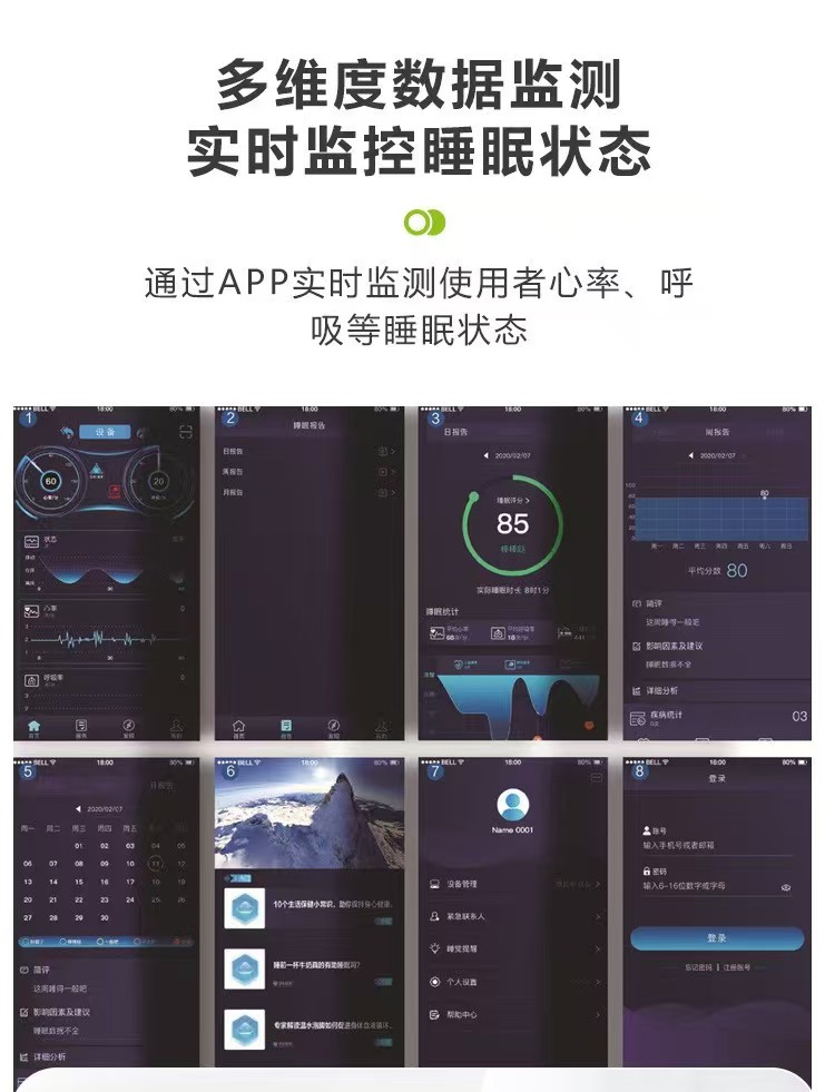 AI智能睡眠监测垫生命体征心率检测带独居老人远程实时监控床垫