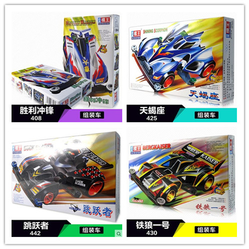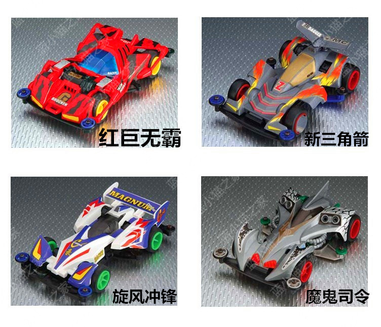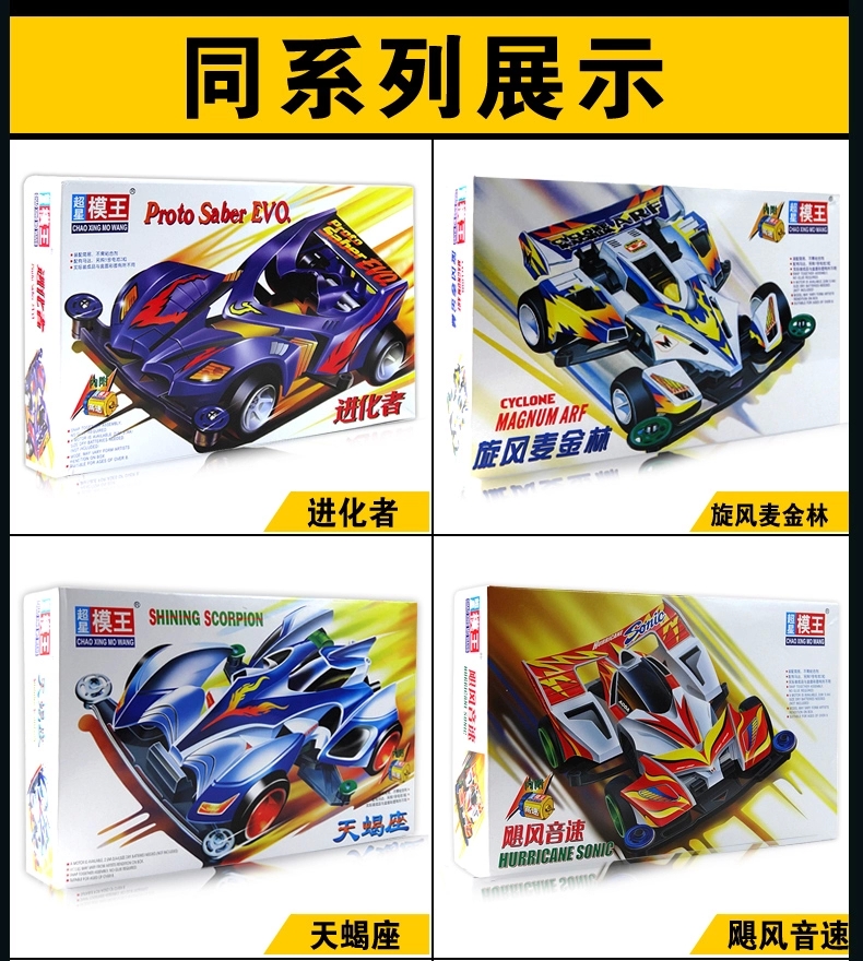 产品介绍:超星模王四驱赛车拼装模型(动画片四驱兄弟款式),怀旧精典,内附模王高速马达,装配简易,不需粘合剂,超低底盘,迅速而稳定。另购五号电池2节。南孚电池效果更好。同类有多款