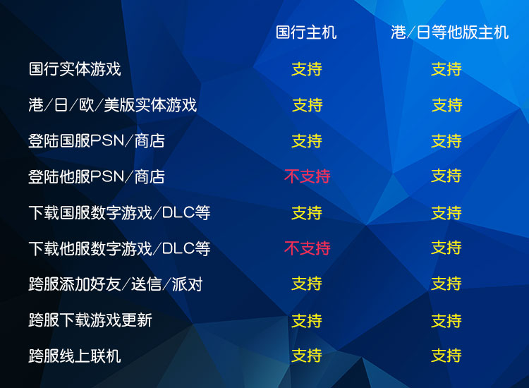 国行主机与其他版本主机对比: