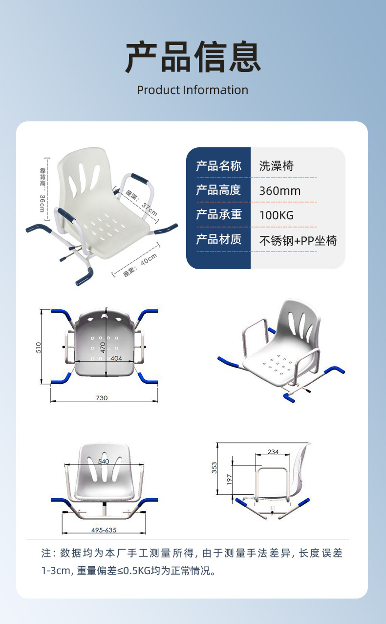 陕西中健智联医疗科技有限公司发布的浴缸360度旋转洗澡椅小户型卫生间铝合金卫铝合金浴座椅坐垫坐板图集库