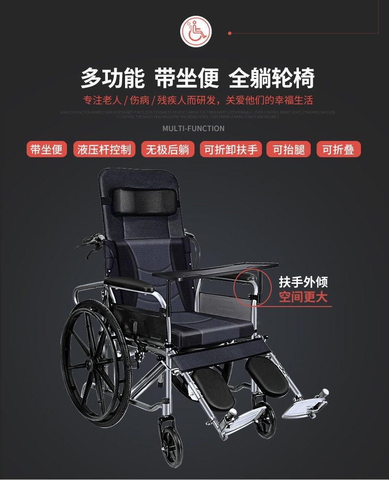 陕西中健智联医疗科技有限公司发布的老人轮椅手推带坐便器可折叠轻便全躺手动老年人轮椅复健椅2025款图集库
