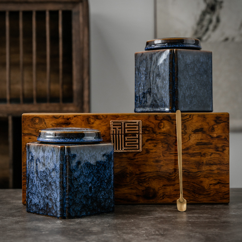 陕西芭莱秀色科技有限公司发布的陶瓷茶叶罐木盒高端礼品密封罐存茶罐中号半斤三两礼盒logo批发图集库