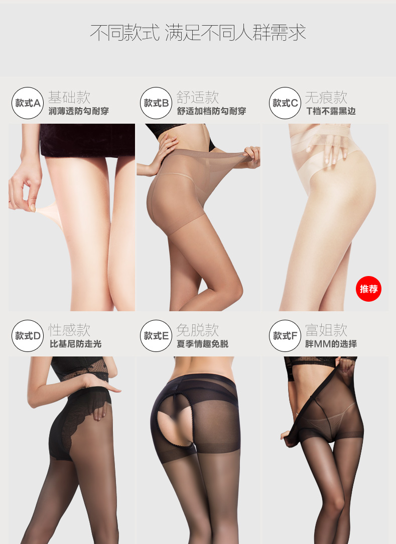 慧一科技发布的丝袜连裤袜防勾丝T裆超薄比基尼黑肉色开裆长筒女打底袜子加大码图集库
