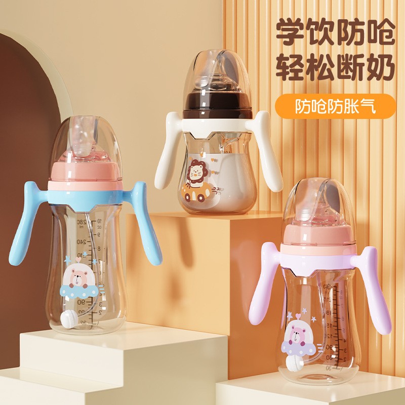 陕西中健智联医疗科技有限公司发布的婴儿奶瓶防呛防胀气宽口径奶瓶带手柄宝宝奶瓶带吸管pp奶瓶批发图集库