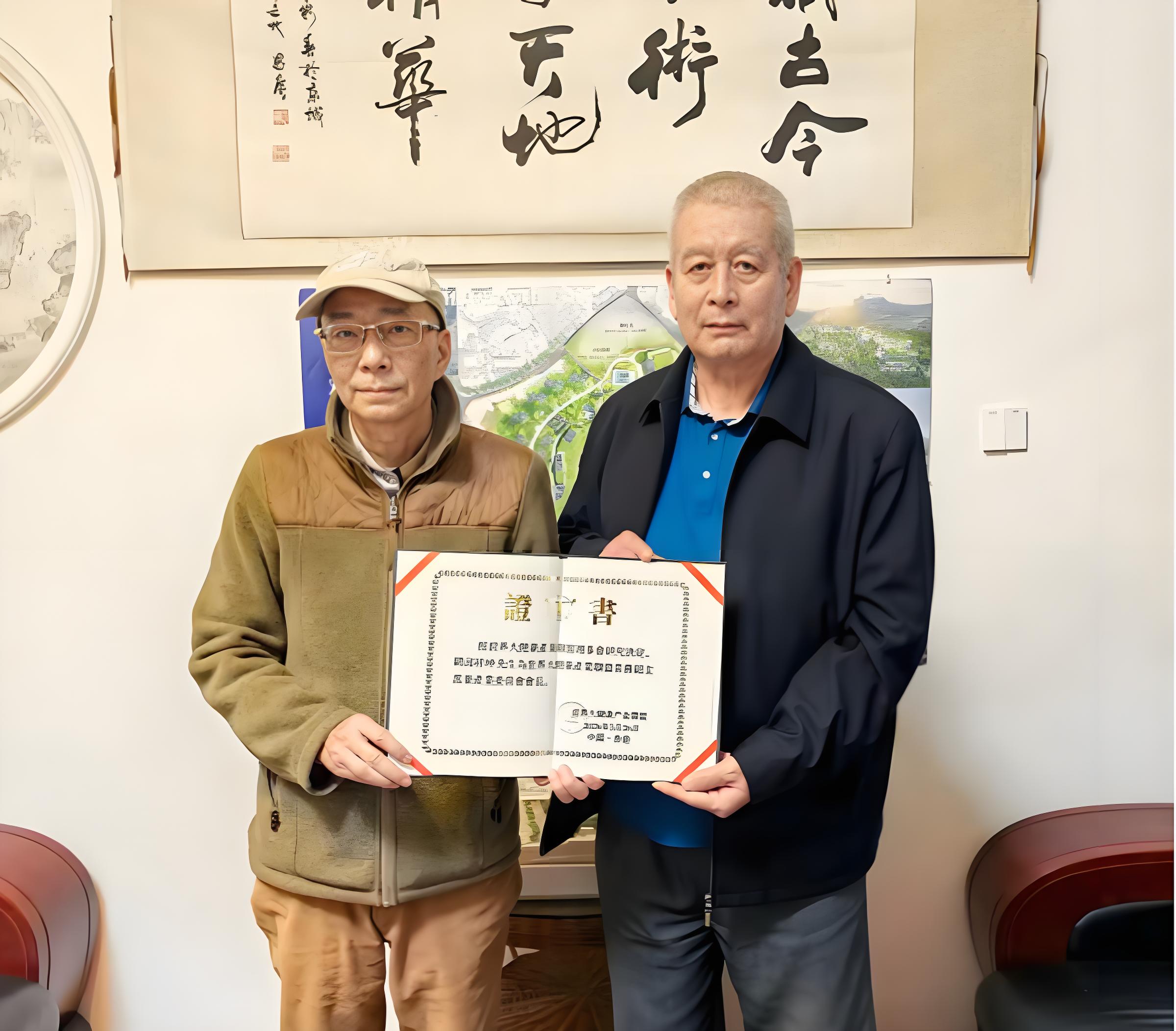 ↑郭周礼主席(右)向邱祥坤副主席(左)颁发任命书。