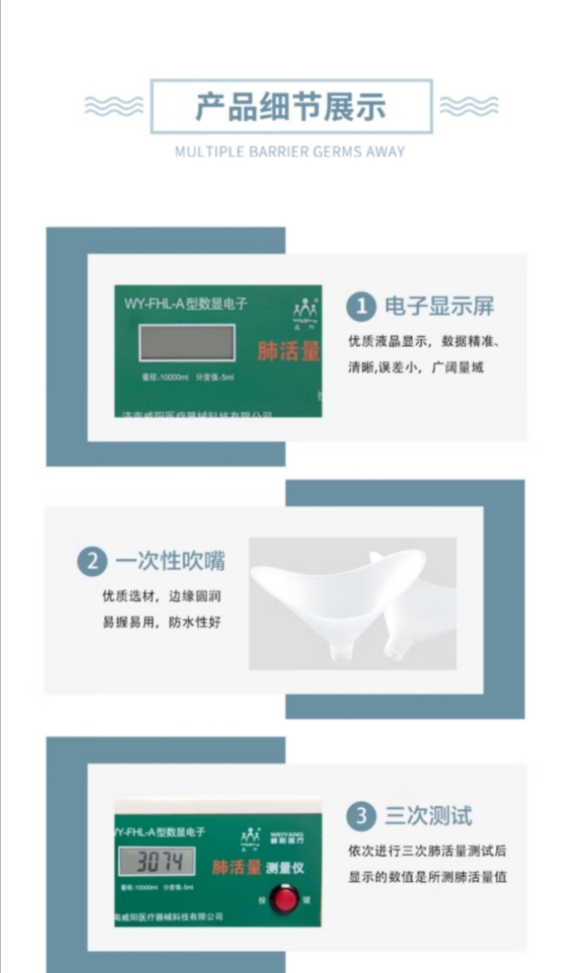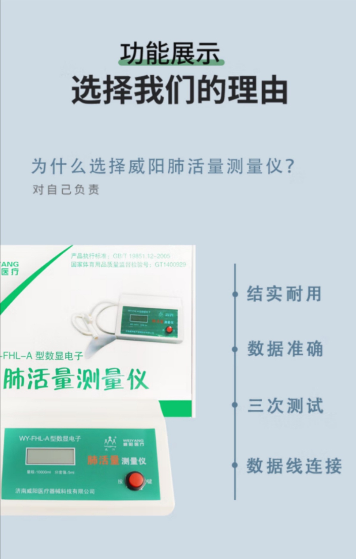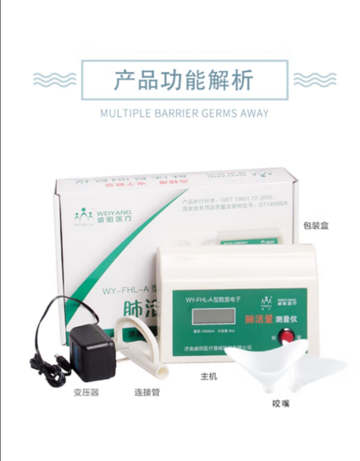 威阳数字显示肺活量检测计医院体育测试手持吹嘴电子肺活量测试仪