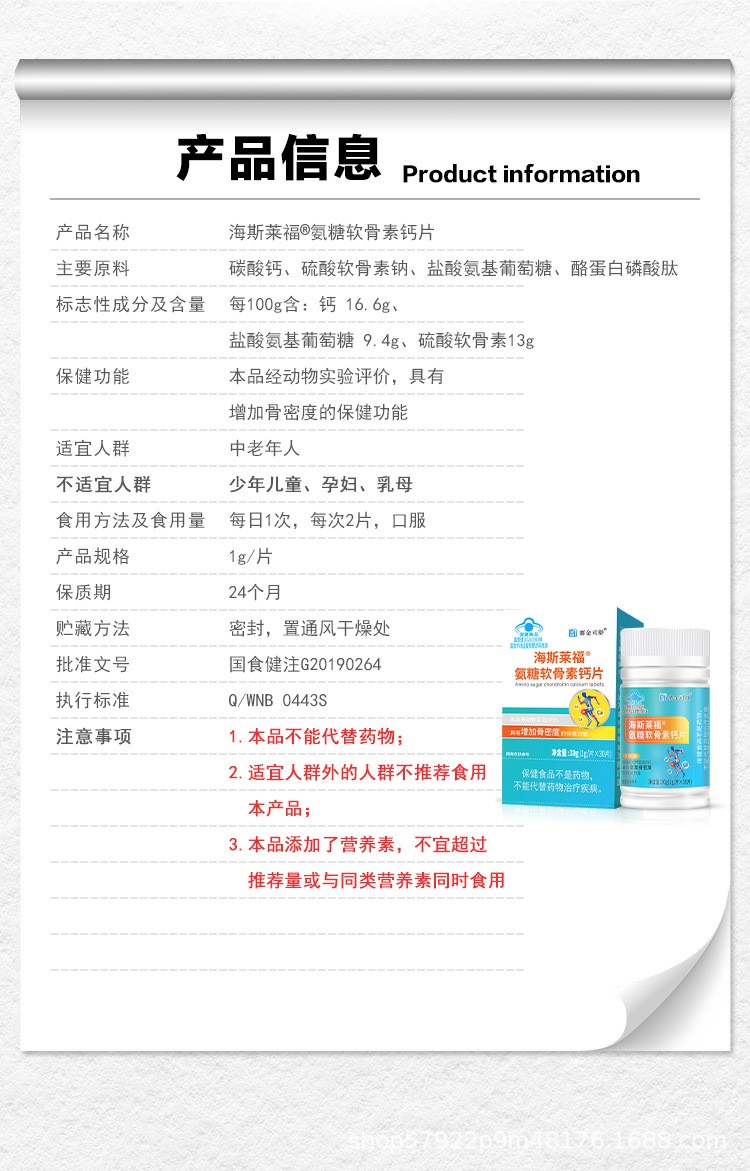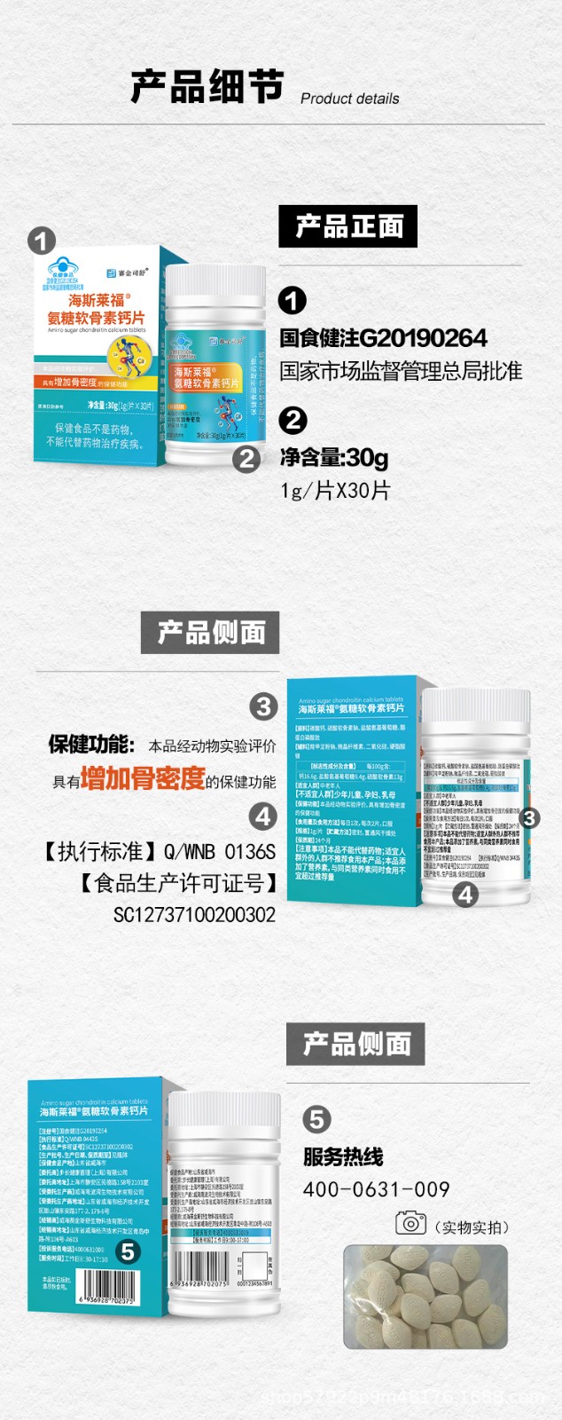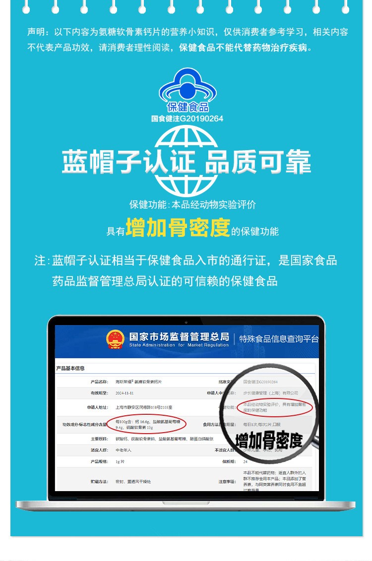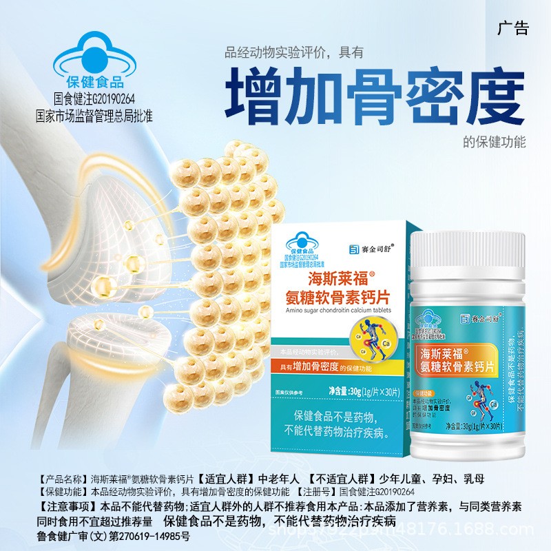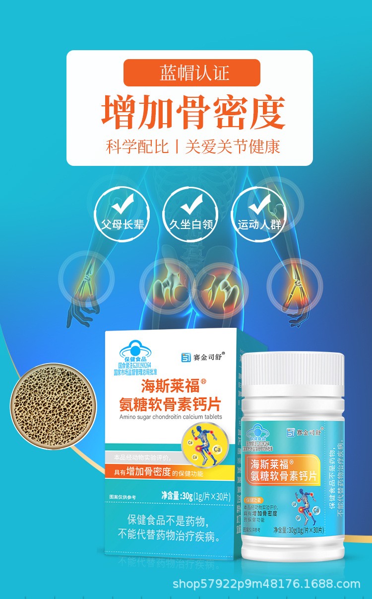陕西芭莱秀色科技有限公司发布的蓝帽氨糖片海斯莱福氨糖软骨素钙片增加骨密度中老年保健食品招商图集库