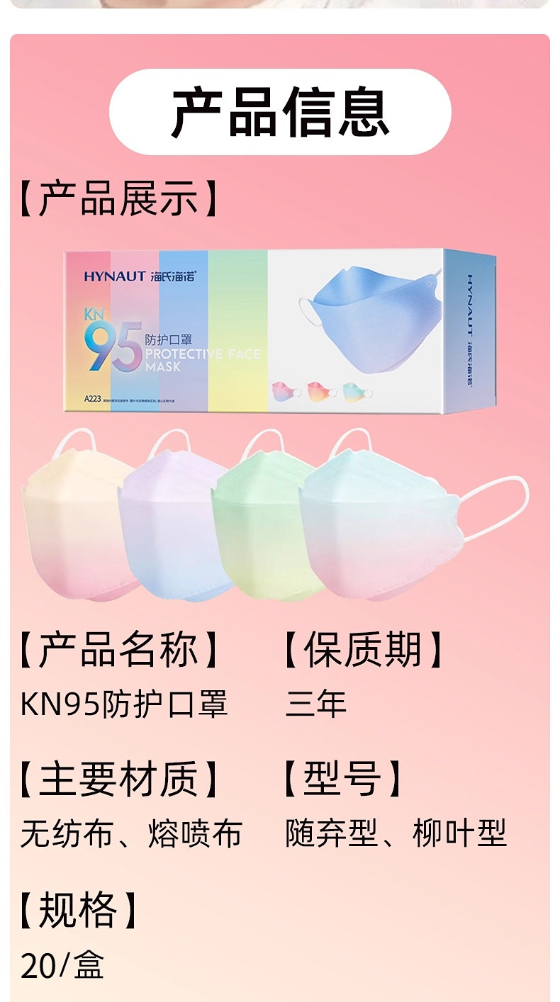 陕西中健智联医疗科技有限公司发布的海氏海诺KN95防护口罩柳叶形一次性渐变色A223图集库