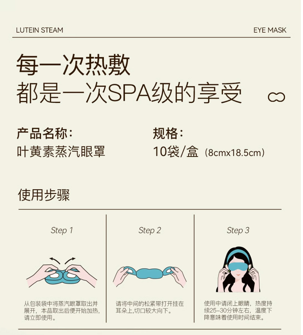 陕西芭莱秀色科技有限公司发布的海氏海诺叶黄素蒸汽眼罩热敷护眼发热舒缓眼疲劳眼罩遮光睡眠眼贴图集库