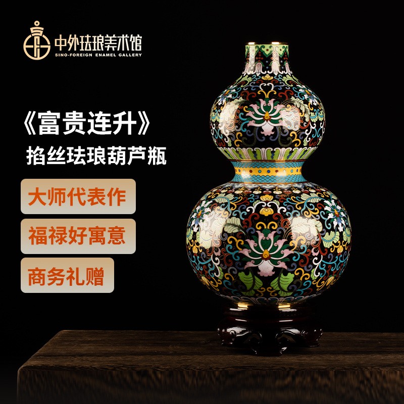 京工珐琅 景泰蓝掐丝珐琅葫芦摆件花瓶家饰铜胎外事礼品贺寿老人